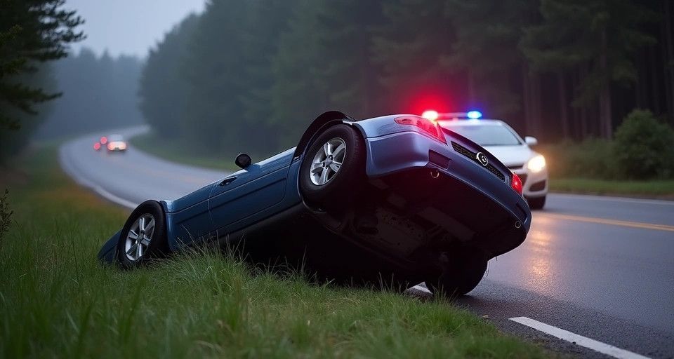Dachowanie Opla po ucieczce przed sarną na trasie Czastary Sokolniki